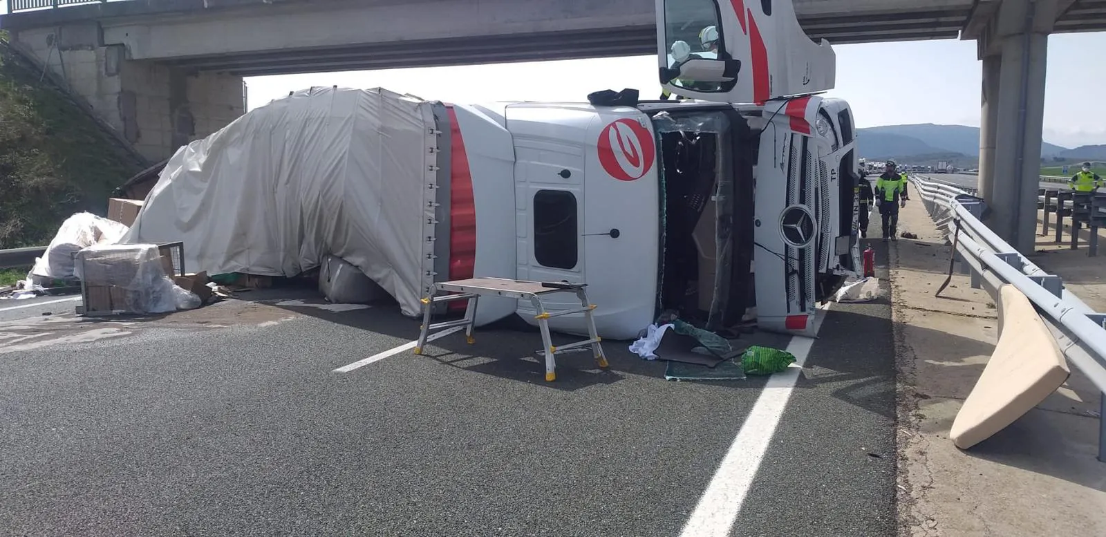 Este mediodía ha tenido lugar el vuelco de un camión en la AP-1 entre Pancorbo y Miranda de Ebro, lo que ha provocado que durante casi dos horas haya estado cortado el tráfico.