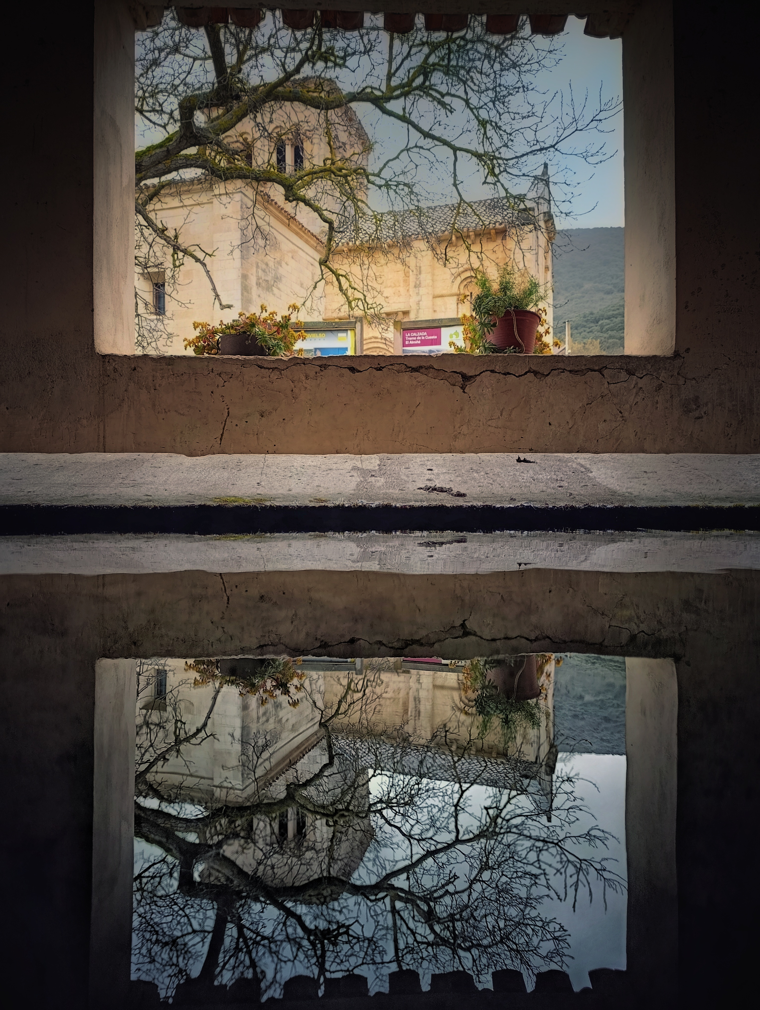 Desde el lavadero de El Almiñe, en el Valle de Valdivielso se puede observar el reflejo de San Nicolas de Bari, joya del románico burgalés.
