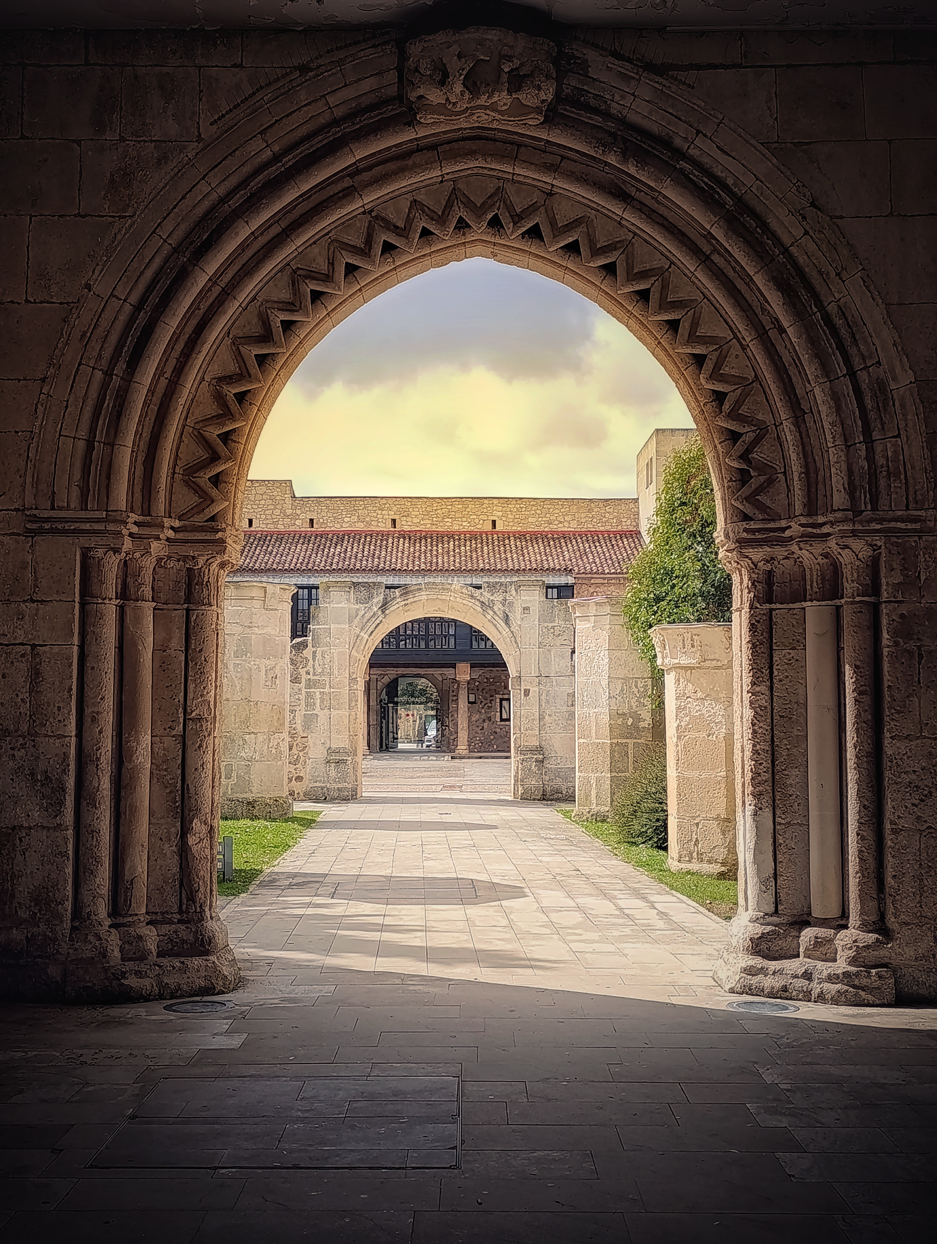 Una vez atravesada la Puerta de los Romeros en el Hospital del Rey, encontramos este arco, que corresponde a uno de los pocos vestigios del románico en la ciudad de Burgos.