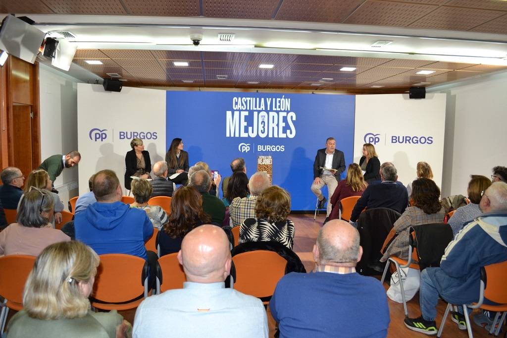 Borja Suárez y Andrea Ballesteros explican a los afiliados del PP burgalés los "40 indicadores para avanzar en el reto de situar a Castilla y León entre las 3 mejores comunidades de España para vivir.